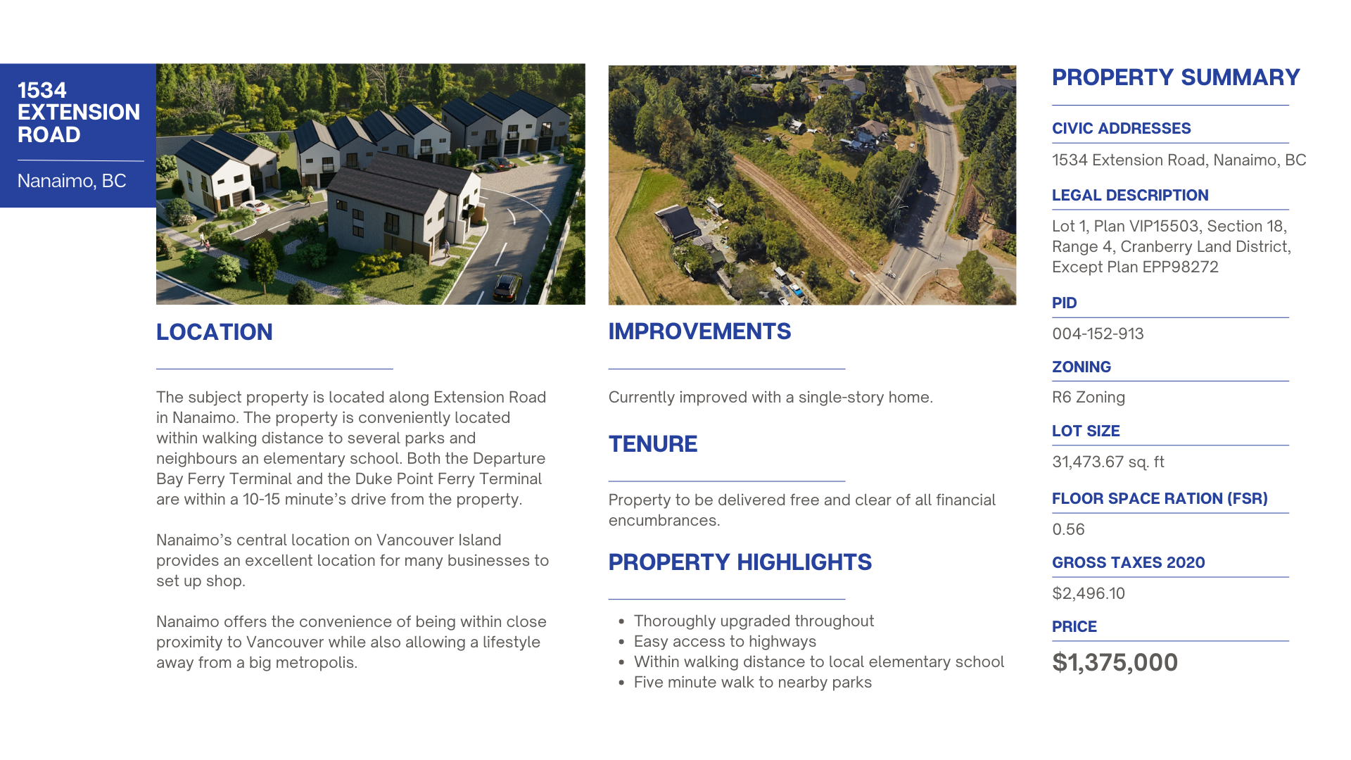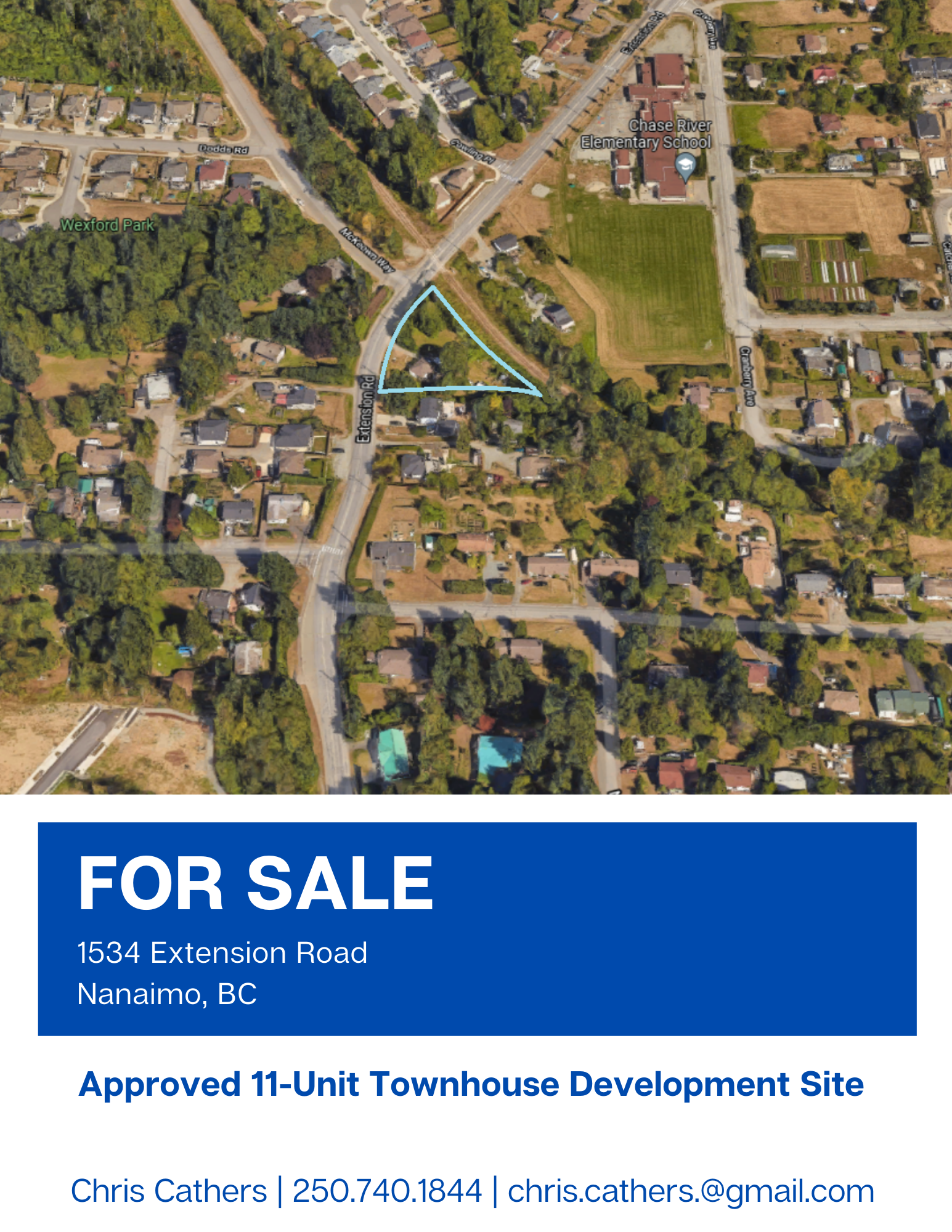 Located along Extension Road in the Chase River neighbourhood of Nanaimo, the property is fully-approved for an 11-unit townhouse development project – meaning developers can begin work immediately. Located just one block away from Chase River Elementary School, this development is ideal for young families who are increasingly being priced out of fully-detached homes in the Nanaimo area.